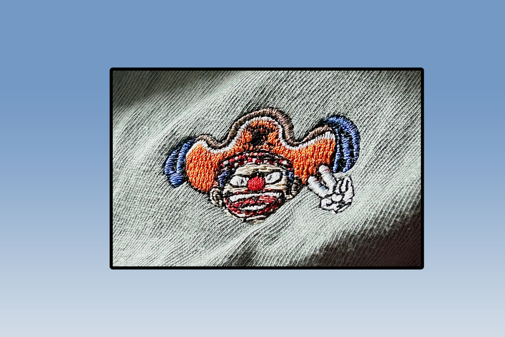 Buggy the Clown embroidery design, digitized using Wilcom software.